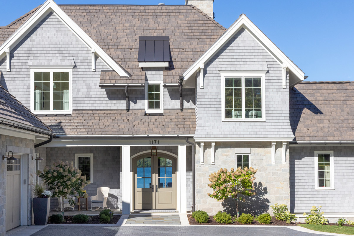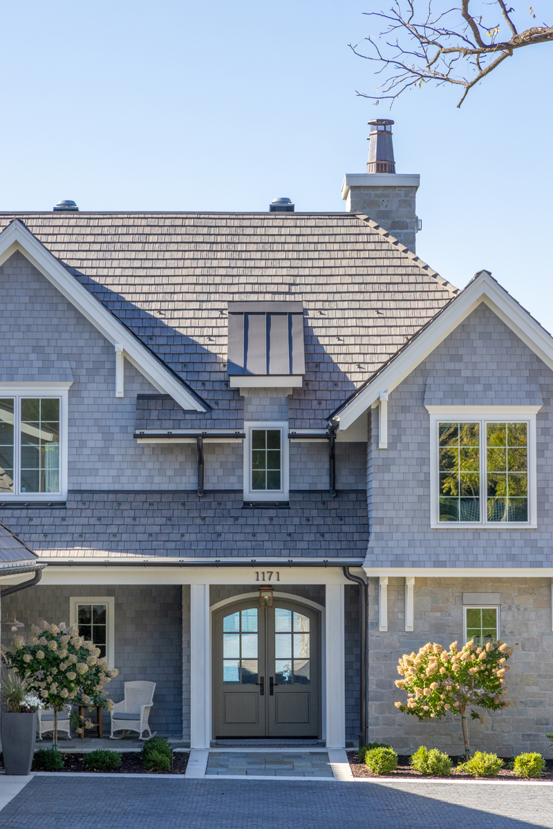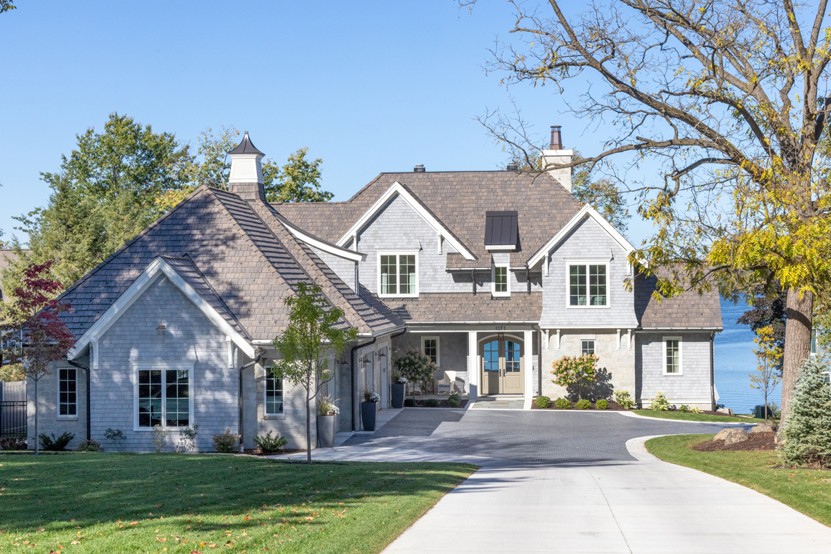 This historic neighborhood is calling for a timeless lake house design. This traditional Wisconsin lake home is rooted in authentic Wisconsin lake home influences including the flared siding and crown molding details, the painted cedar brackets, retractable screens at the porch to take in the lake breeze, and the rolling elevated site sitting 30′ above the lake. A historic boathouse perched on the hill was renovated and grandfathered in on the property. This home combines a refined aesthetic with a touch of tradition.